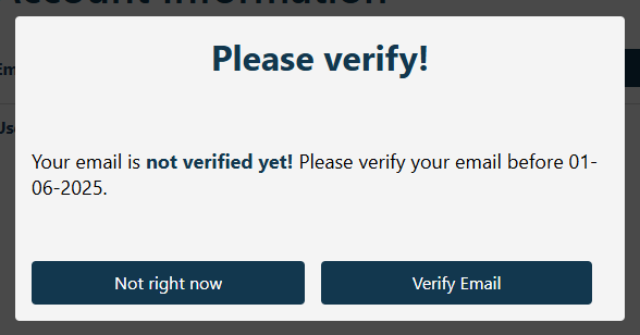 Ik heb veel overlegd met de andere collega die aan dit project werkt over wat ik kon doen. Meestal krijg ik taken die ik kon maken of dingen die ik kon fixen van deze collega. Als ik ergens niet uitkwam, kon ik bij die collega terecht voor hulp of feedback. Bijvoorbeeld bij het maken van de popup die je hier onder ziet kwam ik niet helemaal tot een design waar ik blij mee was want ik ben zelf niet zo goed in designen. Hij heeft me wat tips gegevens zoals het dik maken van de “Not verified yet!” tekst en een animatie die ik heb gemaakt bij de buttons.
