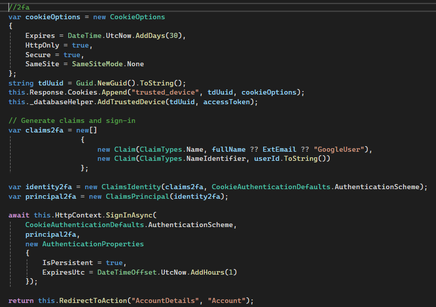 Dit maakt de 2fa cookie en door dit te maken heb ik best wel wat geleerd over cookies en 2fa beveiliging.