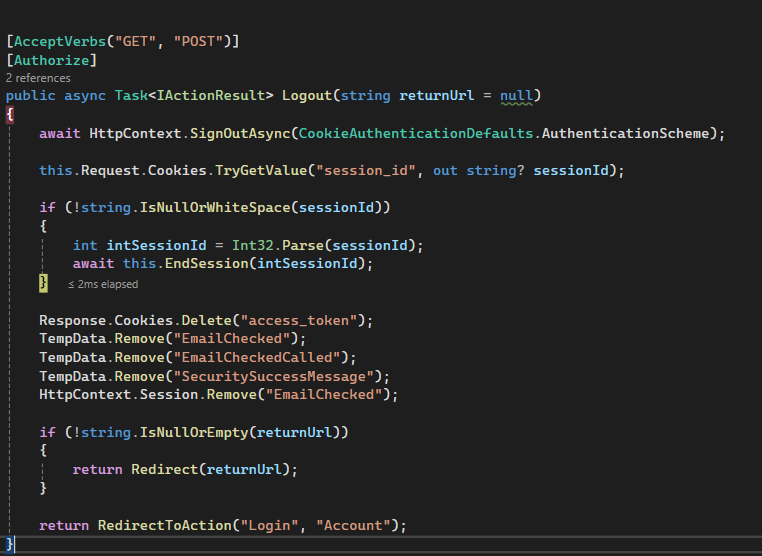 Dit doe ik bij TempData.Remove(“SecuritySuccessMessage”); dit was niet heel bijzonder maar heeft mij wel geleerd om te leren achterhalen waar onverwachten bugs vandaan komen en hoe ik dit moet oplossen.